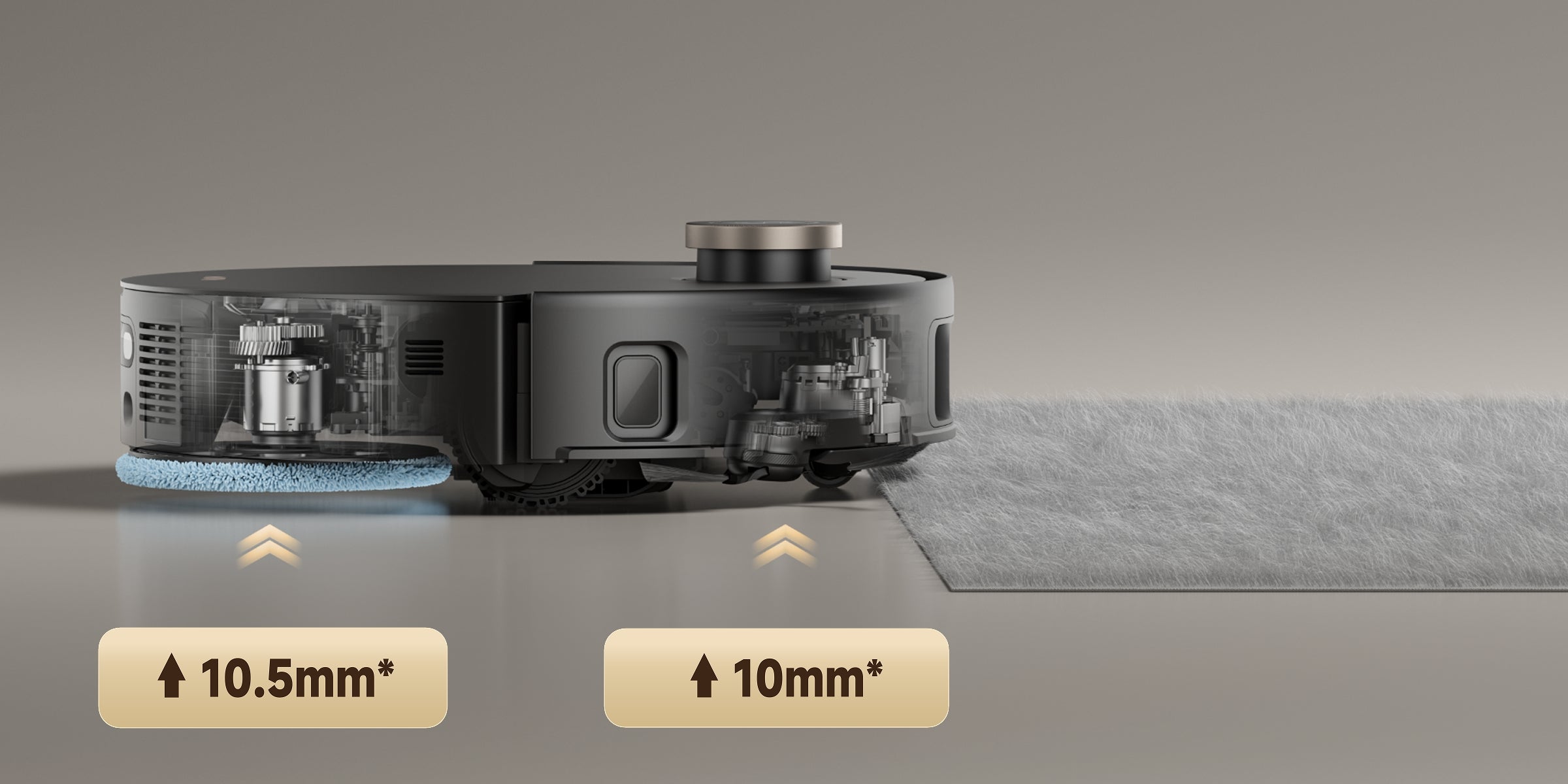 *Pour les tapis dont la hauteur de poil dépasse 3 mm, veuillez activer le mode de nettoyage intelligent des tapis via l’application afin d’éviter de mouiller les tapis à poils moyens ou longs.