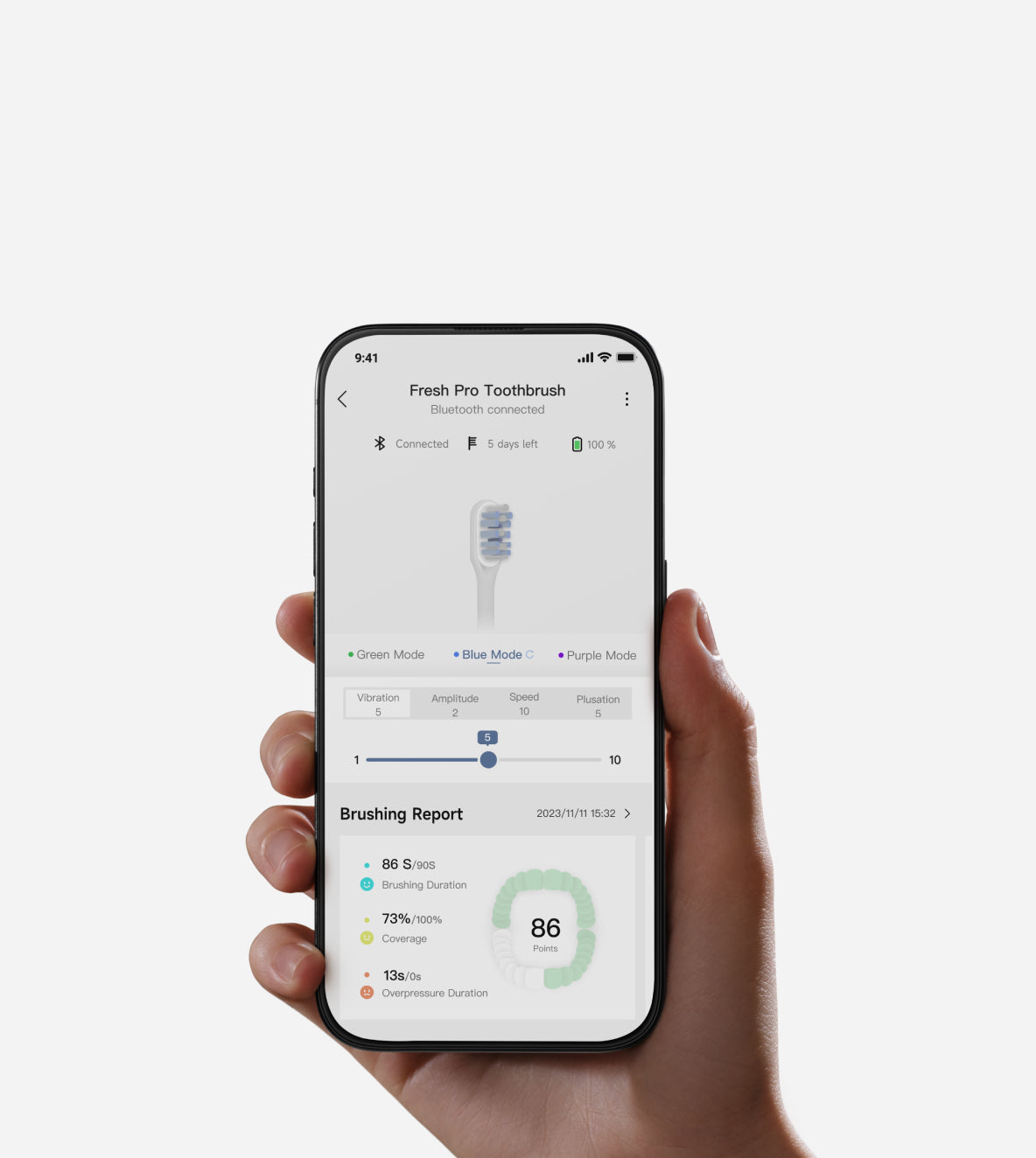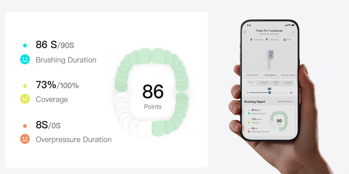 *Brossage plus complet : la technologie de vibration 3D de la Fresh Pro est semblable à la technologie de vibration sonique. *Moteur pas à pas exclusif : certifié par TÜV Rheinland.