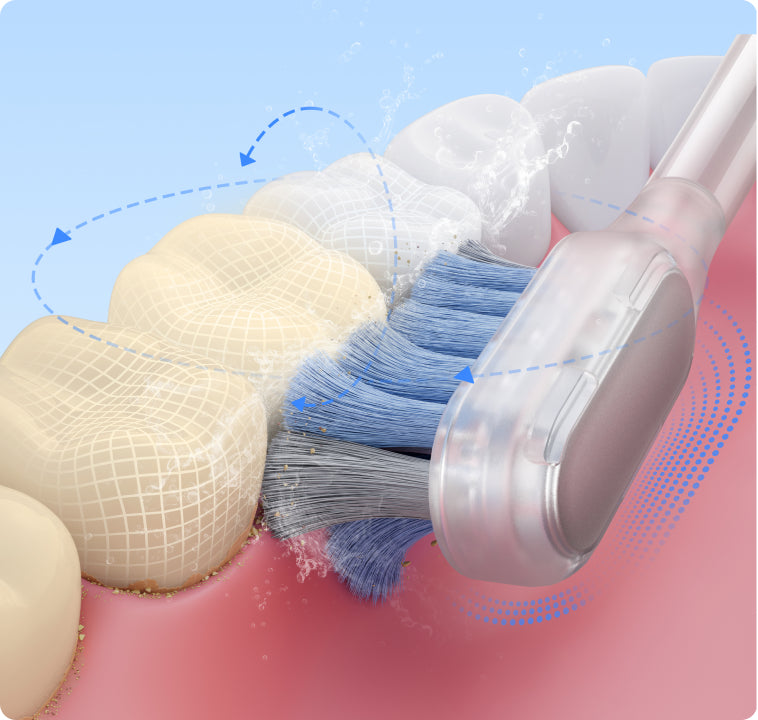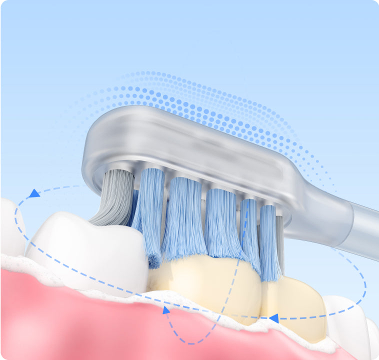Les poils souples aux pointes arrondies à 95 % s'insèrent délicatement dans les interstices et le long de la ligne gingivale, offrant un brossage efficace mais en douceur de vos dents et gencives.