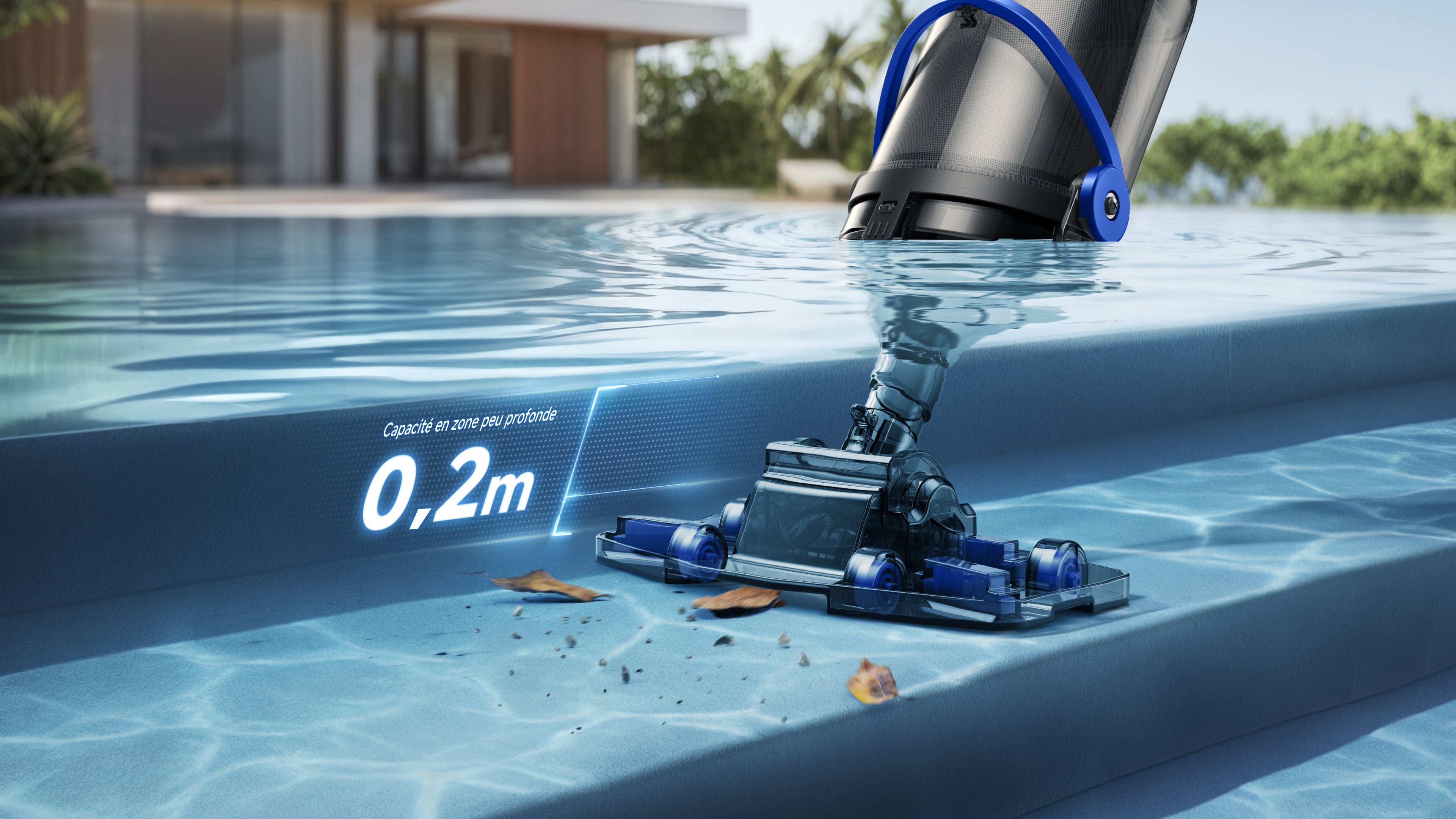 *2,5 m : la longueur totale de l'unité principale et de la perche de rallonge est de 2,5 mètres. D'après les tests effectués dans notre laboratoire interne. Les performances réelles peuvent varier.